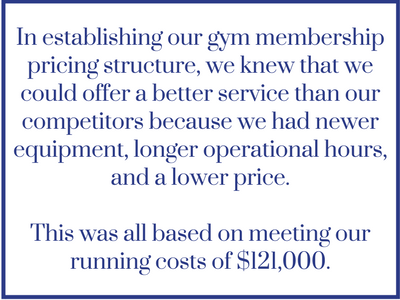 To stay competitive and also help us meet our running costs of $121,000 (which was, again, calculated in our spreadsheet under the Annual Running Costs tab), we settled on the following prices for weekly memberships: