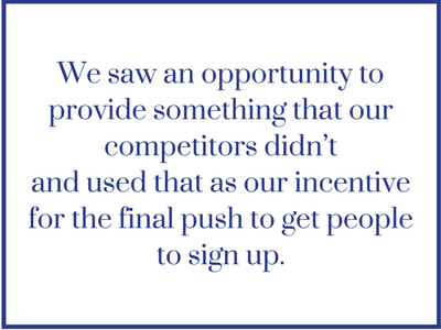 All of this let everyone know we genuinely cared about what people told us, and as a result, we had close to 100 people walk in on our first day, with almost 75 percent of them signed up. They felt like part of our project, and of course, we purposely made them feel that way.