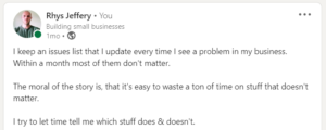 Whenever a problem pops up, I jot it down on my issues list.
